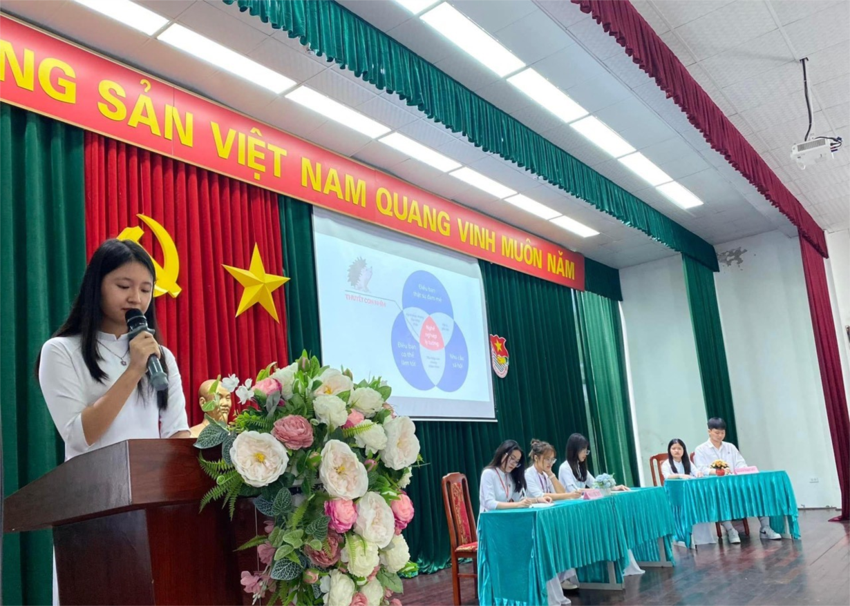 Thực hiện kế hoạch đoàn tháng 9, 8h00 ngày 16/9/2023 (sáng thứ bảy), chi đoàn 12 chuyên Anh với sự chuẩn bị chu đáo đã tổ chức thành công đại hội chi đoàn mẫu. Tham dự đại hội chi đoàn mẫu có sự hiện diện của đồng chí Hoàng Thị Sen – Bí thư đoàn trường, đồng chí Nguyễn Văn Khang – UVBTV đoàn trường, cô giáo Hoàng Thị Kim Cúc – GVCN lớp 12 chuyên Anh và các đồng chí là Bí thư, Phó Bí thư tất cả các chi đoàn khối 11, 12; bí thư lâm thời, phó bí thư lâm thời các chi đoàn khối 10. Sau một thời gian làm việc nghiêm túc, khẩn trương, đại hội chi đoàn mẫu của 12 chuyên Anh đã thành công tốt đẹp. Đoàn trường xin chúc mừng các đồng chí đã trúng cử BCH chi đoàn 12 chuyên Anh. Chúc BCH chi đoàn 12 chuyên Anh sẽ tiếp tục phát huy tinh thần xung kích, sáng tạo, đưa chi đoàn 12 chuyên Anh trở thành chi đoàn vững mạnh, đoàn kết!