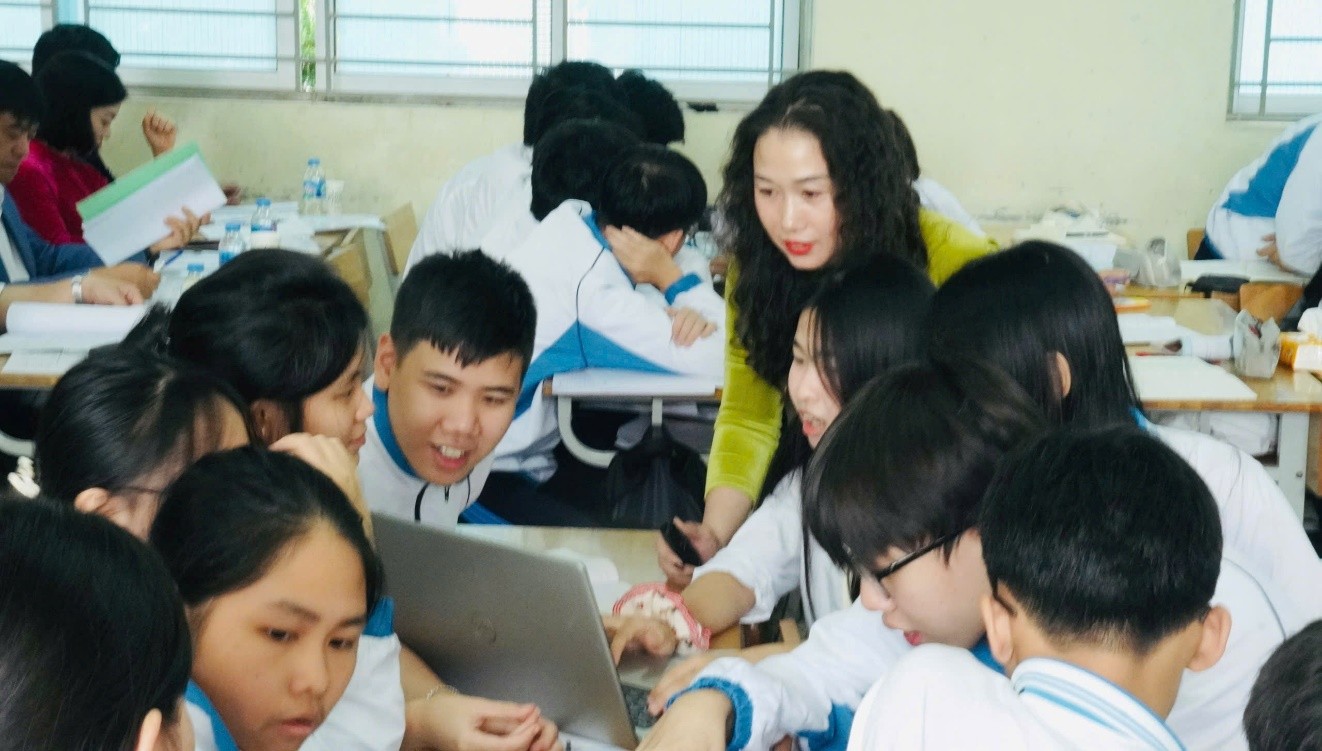 Trong hội giảng lần này, cô Hoàng Thị Kim Cúc - giáo viên Ngữ văn - đã mang đến một giờ học vừa đầy chất văn, vừa đậm tính ứng dụng thực tế với bài thơ “Mùa xuân chín” của Hàn Mặc Tử. Bằng cách tiếp cận theo định hướng dạy học STEM, cô Cúc đã khéo léo kết hợp kiến thức văn học với các yếu tố liên môn như mỹ thuật, âm nhạc, công nghệ thông tin và trải nghiệm sáng tạo. Tiết học giúp học sinh không chỉ cảm nhận sâu sắc vẻ đẹp của mùa xuân và tâm hồn thi sĩ Hàn Mặc Tử, mà còn được thể hiện cảm xúc, sự sáng tạo của mình qua những sản phẩm STEM phong phú, gồm: Thư gửi Hàn Mặc Tử, bài thơ “Giữ hộ hồn xuân”, sản phẩm âm nhạc và bức tranh thể hiện hình ảnh “Mùa xuân trong mắt em”.