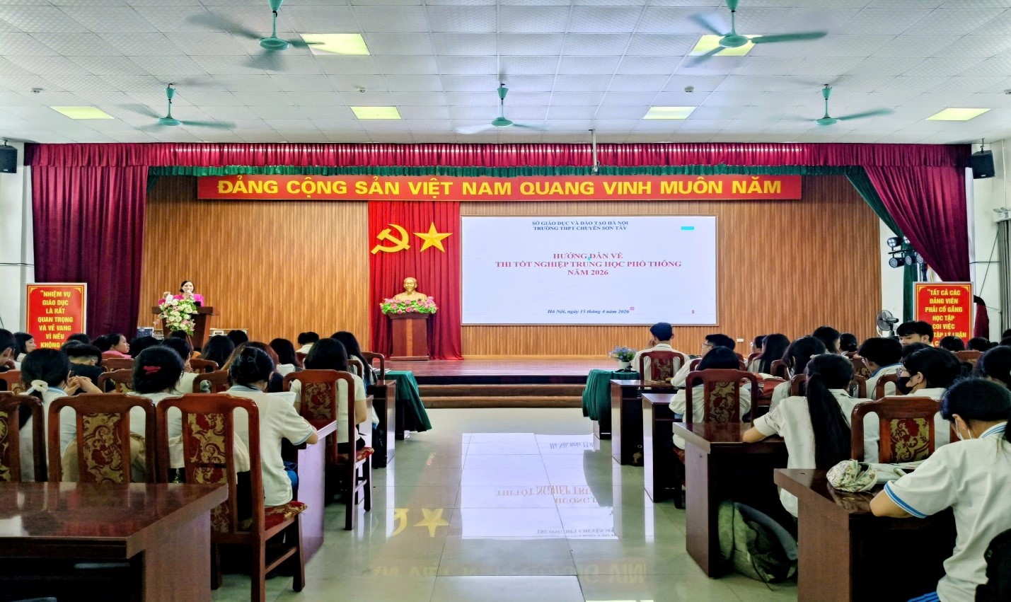 Nhằm chuẩn bị tốt nhất cho Kỳ thi tốt nghiệp THPT năm 2026, trường THPT chuyên Sơn Tây đã triển khai đợt tập huấn quy chế và hướng dẫn đăng ký dự thi. Chương trình được thực hiện theo hai hình thức: trực tiếp dành cho học sinh khối 12 và hỗ trợ trực tuyến cho thí sinh tự do, nhằm giúp các em nắm chắc quy định, thực hiện đăng ký chính xác và hạn chế tối đa sai sót.