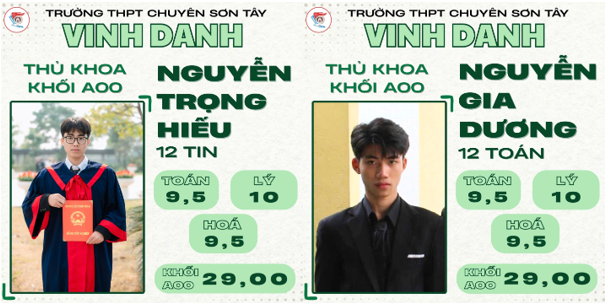 Trường THPT chuyên Sơn Tây vinh danh các em, những học sinh xuất sắc, ưu tú nhất của nhà trường trong kỳ thi quan trọng này!