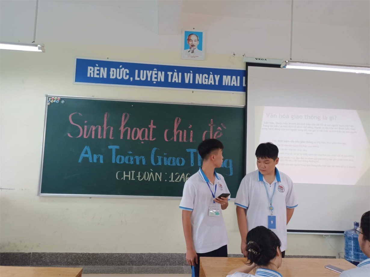 Ngày 16, 19/9: các lớp tổ chức chuyên đề giáo dục với chủ đề “Xây dựng Văn hóa giao thông trong cộng đồng” theo đơn vị lớp. Nội dung chuyên đề gồm 3 phần: Trình chiếu Video tuyền truyền với chủ đề “Xây dựng Văn hóa giao thông trong cộng đồng”; thi tìm hiểu các kiến thức về đảm bảo ATGT theo bộ câu hỏi TNKQ; Rút ra bài học giáo dục cho mỗi cá nhân về đảm bảo an toàn giao thông cho bản thân và cho cộng đồng.