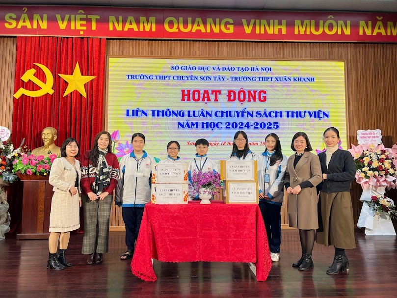 Thực hiện TT 16/2022 -TT-BGDĐT ngày 22/11/2022 của Bộ Giáo dục Đào tạo về việc ban hành quy định tiêu chuẩn Thư viện cơ sở giáo dục mầm non và phổ thông; Thực hiện Kế hoạch hoạt động của thư viện năm học 2024 – 2025. Chiều ngày 18/2/2025, Thư viện trường THPT chuyên Sơn Tây tổ chức luân chuyển 50 cuốn sách tới thư viện trường THPT Xuân Khanh và nhận 50 cuốn sách từ Thư viện trường THPT Xuân Khanh luân chuyển sang. Đây là hoạt động thường xuyên, có kế hoạch phối hợp chặt chẽ giữa Thư viện trường THPT và thư viện các trường lân cận nhằm đáp ứng nhu cầu nghiên cứu, học tập của giáo viên và học sinh trong nhà trường.