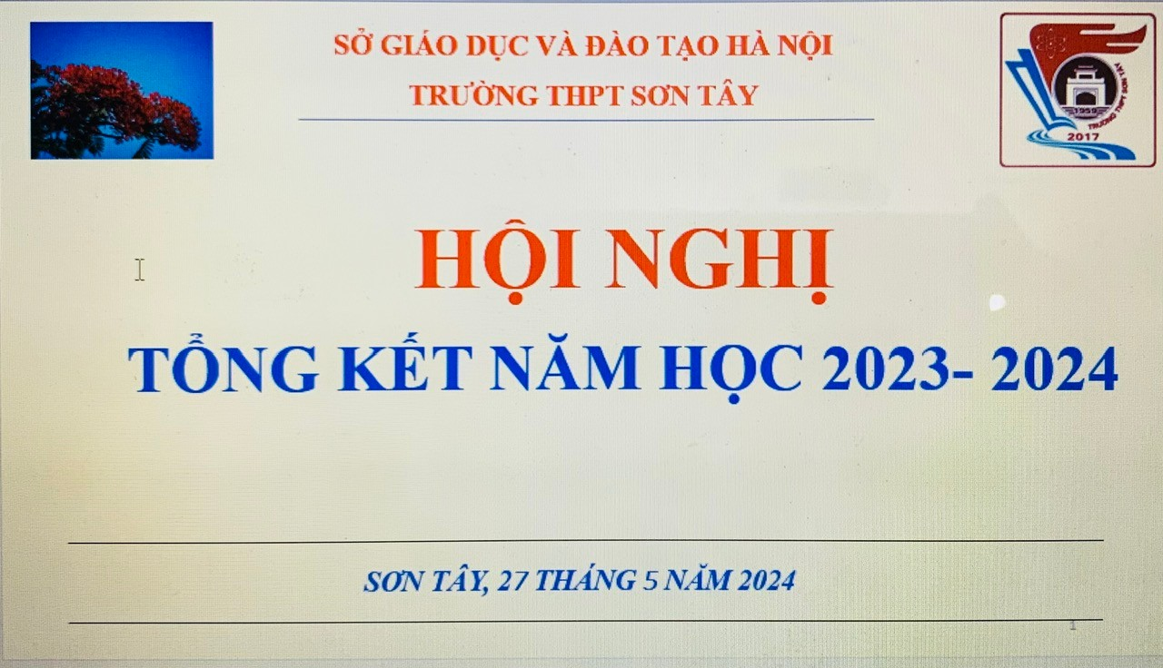 Chiều ngày 27 tháng 5 năm 2024, tại hội trường tầng 2 nhà C trường THPT Sơn Tây đã tổ chức tổng kết năm học 2023 – 2024. Buổi tổng kết với sự tham gia của Ban giám hiệu và toàn thể cán bộ, giáo viên, nhân viên nhà trường.