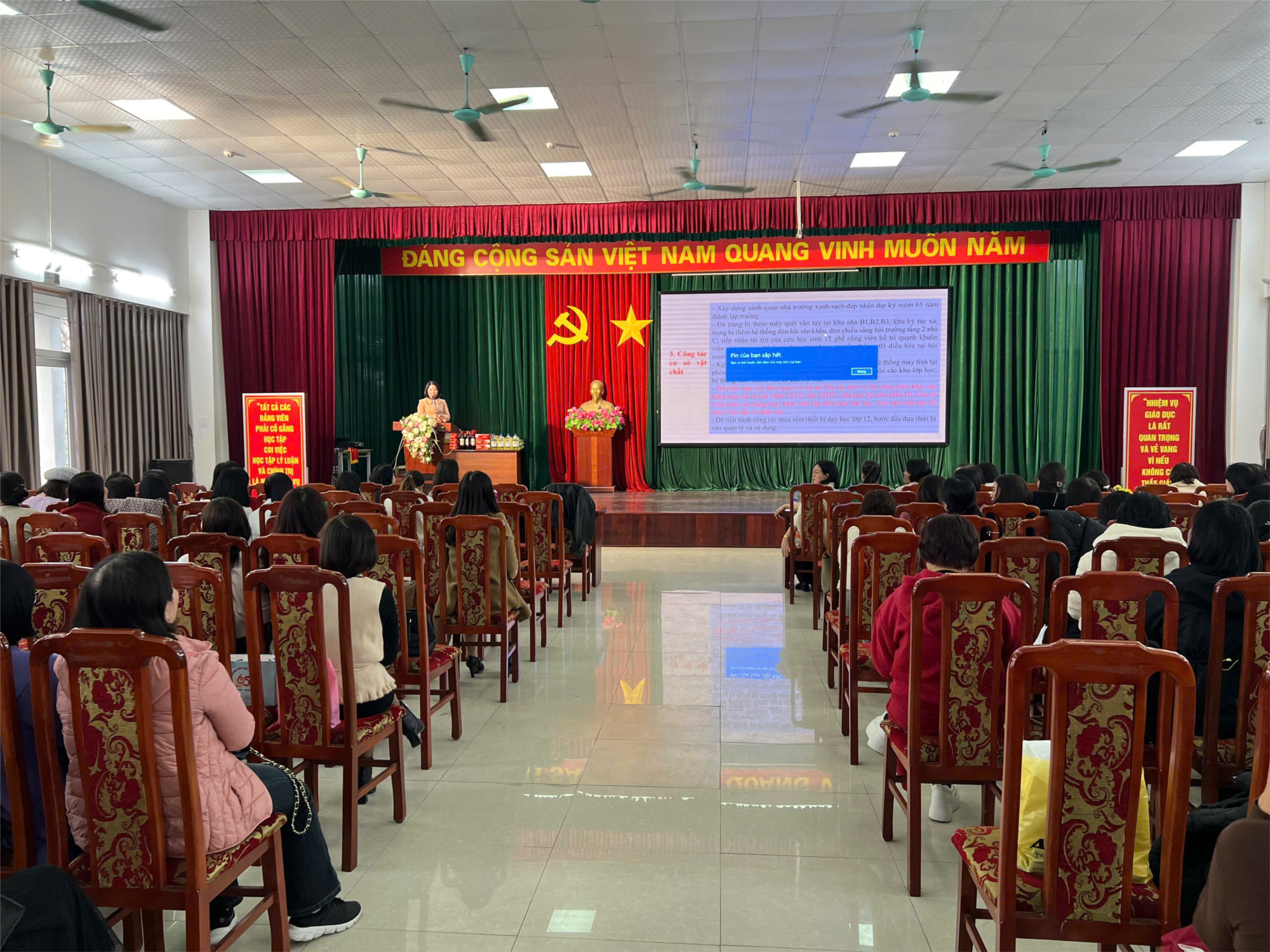 Sau phần báo cáo, đồng chí Phạm Thị Huyền đã nêu những nhiệm vụ trọng tâm trong học kỳ II: Tiếp tục tăng cường công tác giáo dục đạo đức học sinh; Tổ chức cho giáo viên, học sinh tham gia “tháng tự học ngoại ngữ” theo kế hoạch của Sở; Thực hiện tốt các kỳ kiểm tra khảo sát các khối lần 2 cấp trường, cấp thành phố; Thi học sinh giỏi khối 10, 11; Dạy tăng cường cho học sinh chậm tiến bộ; Phấn đấu đạt 100% tốt nghiệp THPT, tăng thứ hạng các môn thi tốt nghiệp so với các năm trước; Hoàn thành đánh giá cuối năm cho học sinh; Xét học bổng cho học sinh cả 3 khối vào cuối năm học. Hoàn thành hồ sơ thi đua cuối năm cho các tập thể, cá nhân năm học 2024-2025.