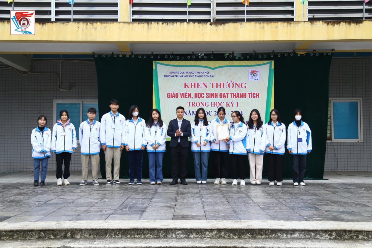 Ngày 04 tháng 12 năm 2023, trường THPT Sơn Tây đã tổ chức khen thưởng giáo viên, học sinh đạt thành tích trong học kỳ I, năm học 2023-2024. Cô giáo Phạm Thị Huyền - Phó hiệu trưởng phụ trách trường, thầy giáo Vũ Duy Khôi - Phó hiệu trưởng đã trao những phần thưởng xứng đáng với các thành quả mà thầy cô và học sinh đã đạt được trong thời gian vừa qua.