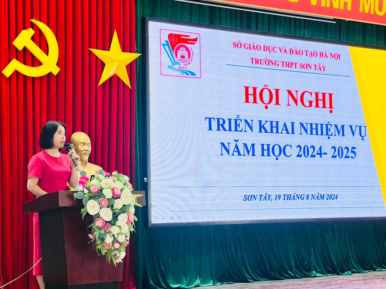 Ngày 19/8/2024, tại trường THPT Sơn Tây đã diễn ra Hội nghị triển khai nhiệm vụ năm học 2024 – 2025. Tham dự Hội nghị có đầy đủ cán bộ, giáo viên, nhân viên nhà trường. Đồng chí Phạm Thị Huyền – Phó Hiệu trưởng phụ trách trường chủ trì Hội nghị.