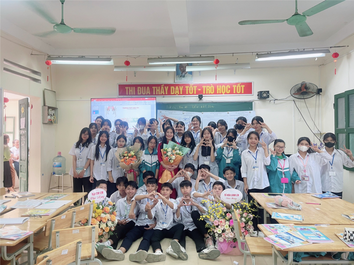 Các GV tổ Hóa – Sinh – CN trường THPT Sơn Tây tặng hoa chúc mừng cô giáo Nguyễn Thị Thu Huyền trong hội thi GVG cấp cụm Sơn Tây- Ba Vì