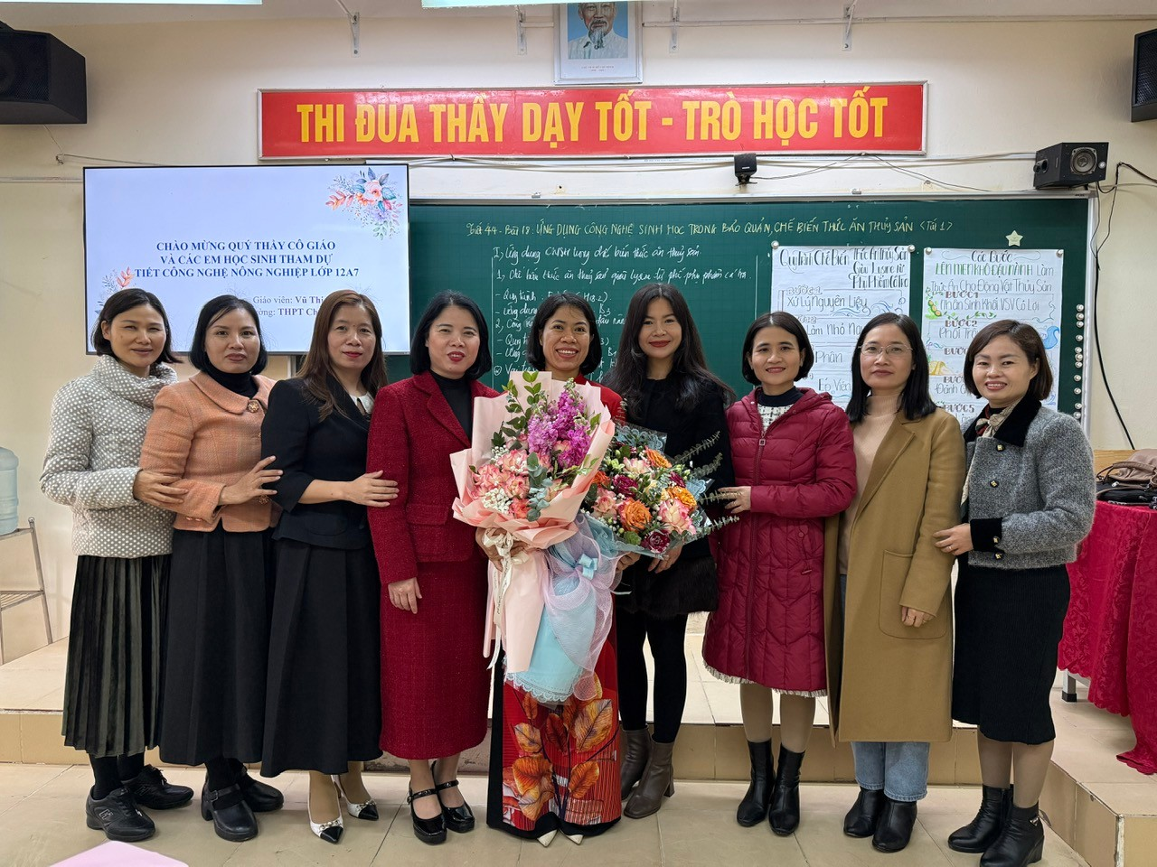 Cô giáo Vũ Thị Tạo và học sinh lớp 12A7 trong tiết dạy dự thi giáo viên giỏi