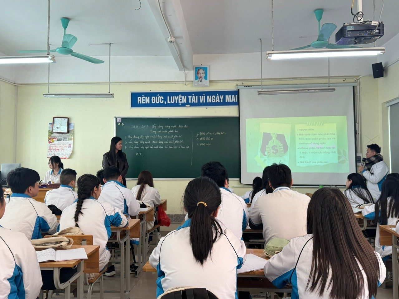 Đồng chí Nguyễn Quỳnh Anh thao giảng tại lớp 11A2.