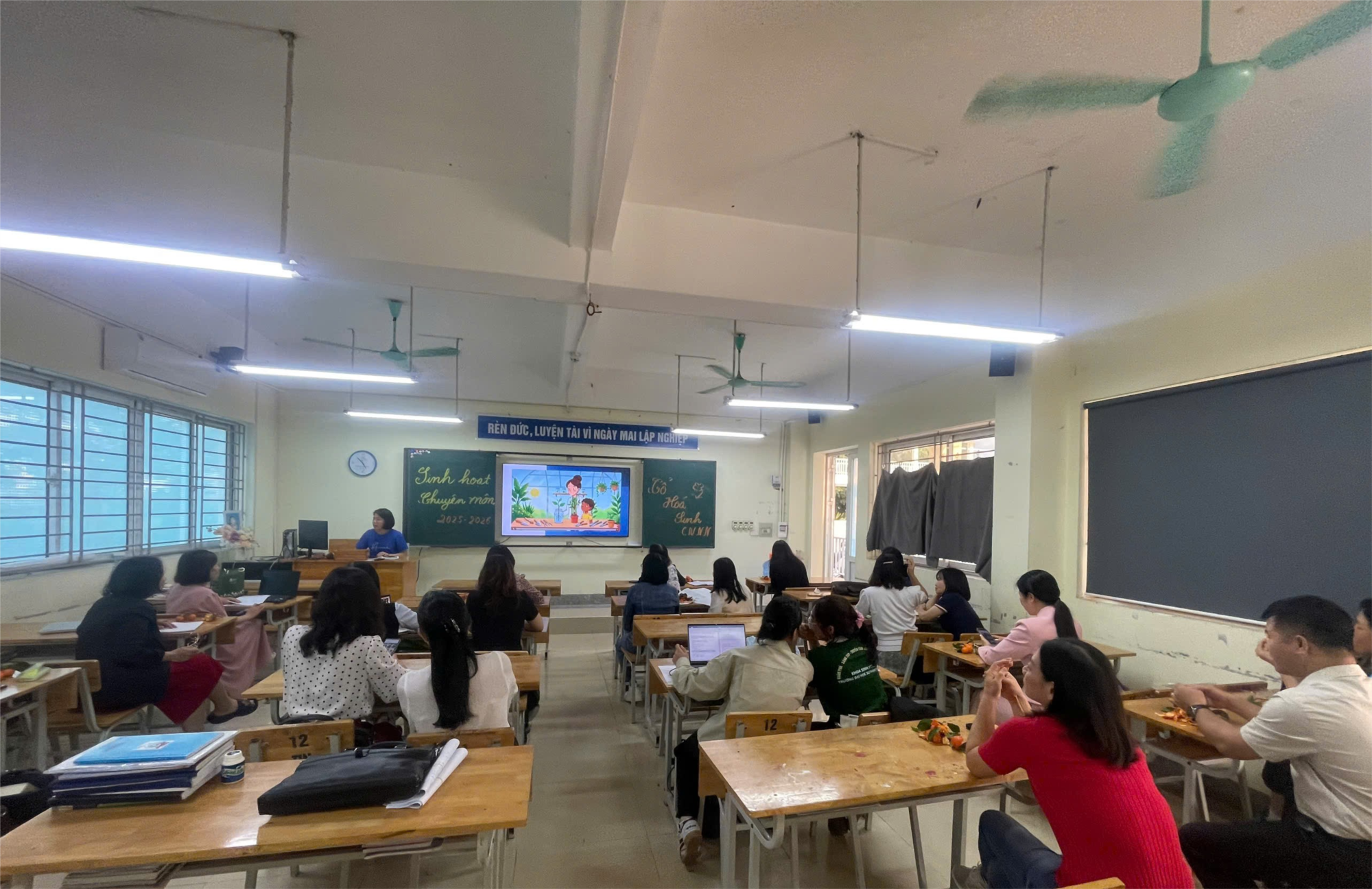 Cô giáo Vũ Thị Tạo trình bày giáo án có ứng dụng AI.
