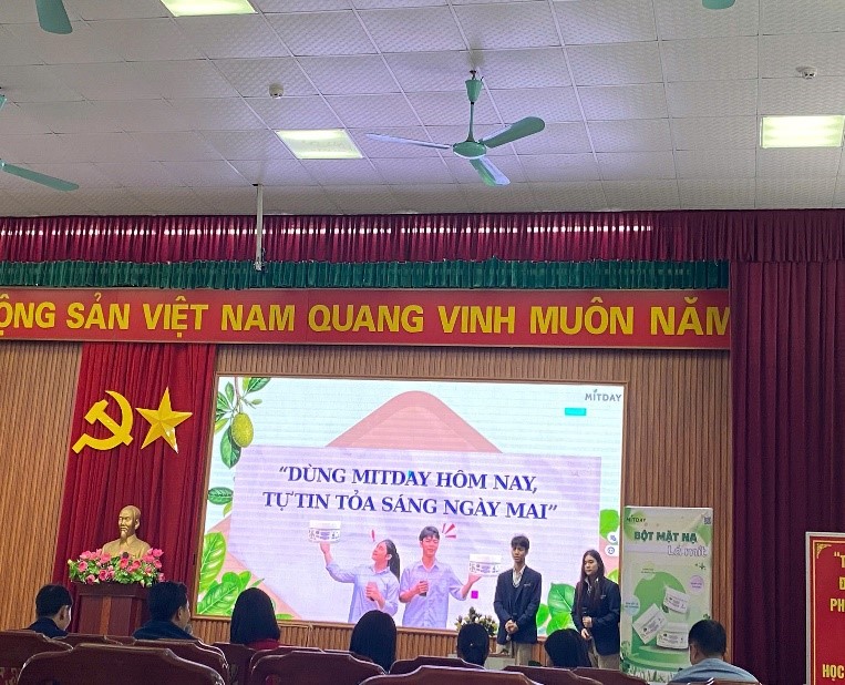 Cụ thể, dự án “Bột đắp mặt sinh học từ lá mít”- gồm các thành viên Lại Kim Ngân – lớp 11A1 và Nguyễn Trung Hiếu – lớp 11 chuyên Văn với sự hướng dẫn của 2 cô giáo: Đỗ Thị Thanh Mai và Hoàng Thị Thùy Dương đã xuất sắc đạt giải nhất cụm trường THPT số 13 và giải nhì cấp thành phố. Dự án hướng tới việc tận dụng nguồn nguyên liệu tự nhiên sẵn có tại địa phương – lá mít – để nghiên cứu và phát triển sản phẩm chăm sóc da an toàn, thân thiện với môi trường. Ý tưởng không chỉ mang giá trị khoa học và tính ứng dụng thực tiễn mà còn góp phần nâng cao giá trị của nguồn nguyên liệu tự nhiên, đồng thời lan tỏa thông điệp về lối sống xanh và phát triển bền vững.