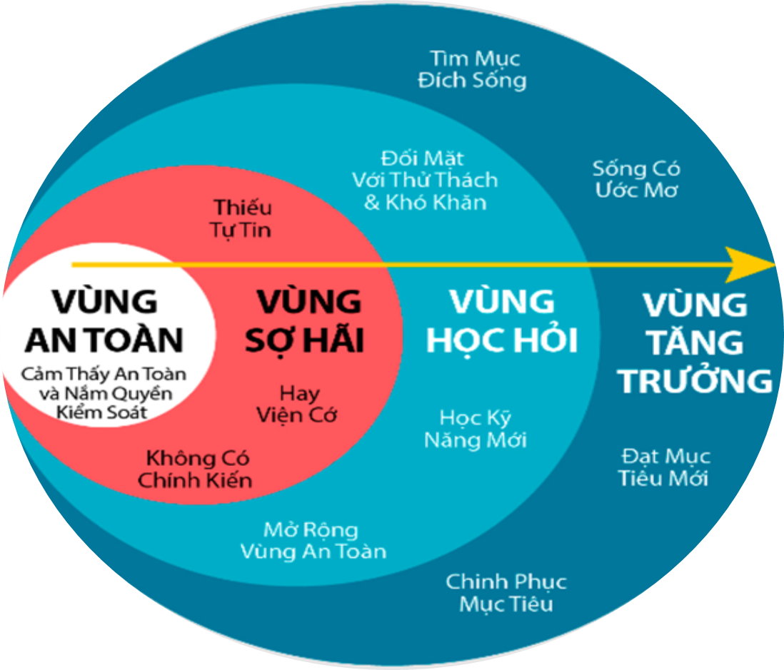 Khái niệm “Vùng an toàn”: Là một trạng thái mà bạn hoàn toàn thoải mái về mặt cảm xúc, bạn cảm thấy an toàn tuyệt đối, quen thuộc với môi trường hiện tại mà không muốn đi ra khỏi đó.