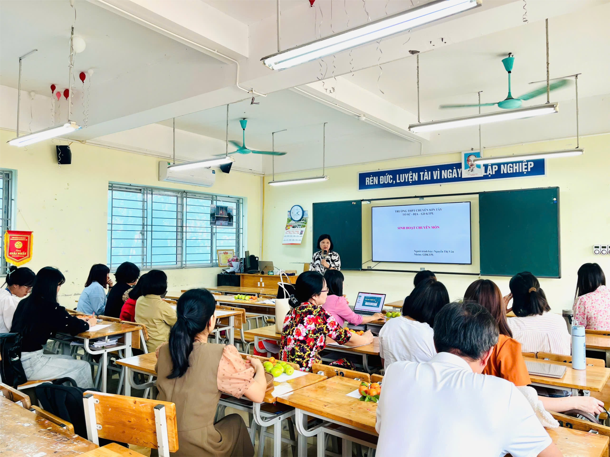 Thực hiện kế hoạch và nhiệm vụ năm học 2025 - 2026 của trường THPT chuyên Sơn Tây, ngày 16 tháng 3 năm 2026 tổ Sử - Địa - Giáo dục Kinh tế và Pháp luật (GDKT&PL) tổ chức sinh hoạt chuyên đề lần 2 trong năm học với chủ đề “Ứng dụng công nghệ AI trong dạy học Giáo dục Kinh tế và Pháp luật; nâng cao hiệu quả ôn tập thi tốt nghiệp THPT môn Địa lí, Lịch sử”. Mục tiêu của hội thảo nhằm phát triển năng lực của giáo viên đáp ứng yêu cầu giảng dạy ở trường THPT chuyên, tăng cường ứng dụng AI trong dạy học và nâng cao chất lượng, hiệu quả ôn tập thi tốt nghiệp THPT.